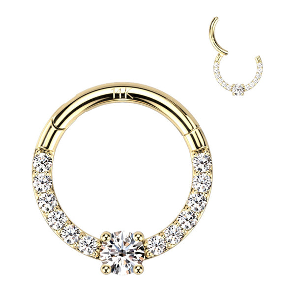 16g CZ Solitaire Front 14k Gold Hinged Ring Hinged Rings 16g - 5/16" diameter (8mm) Clear