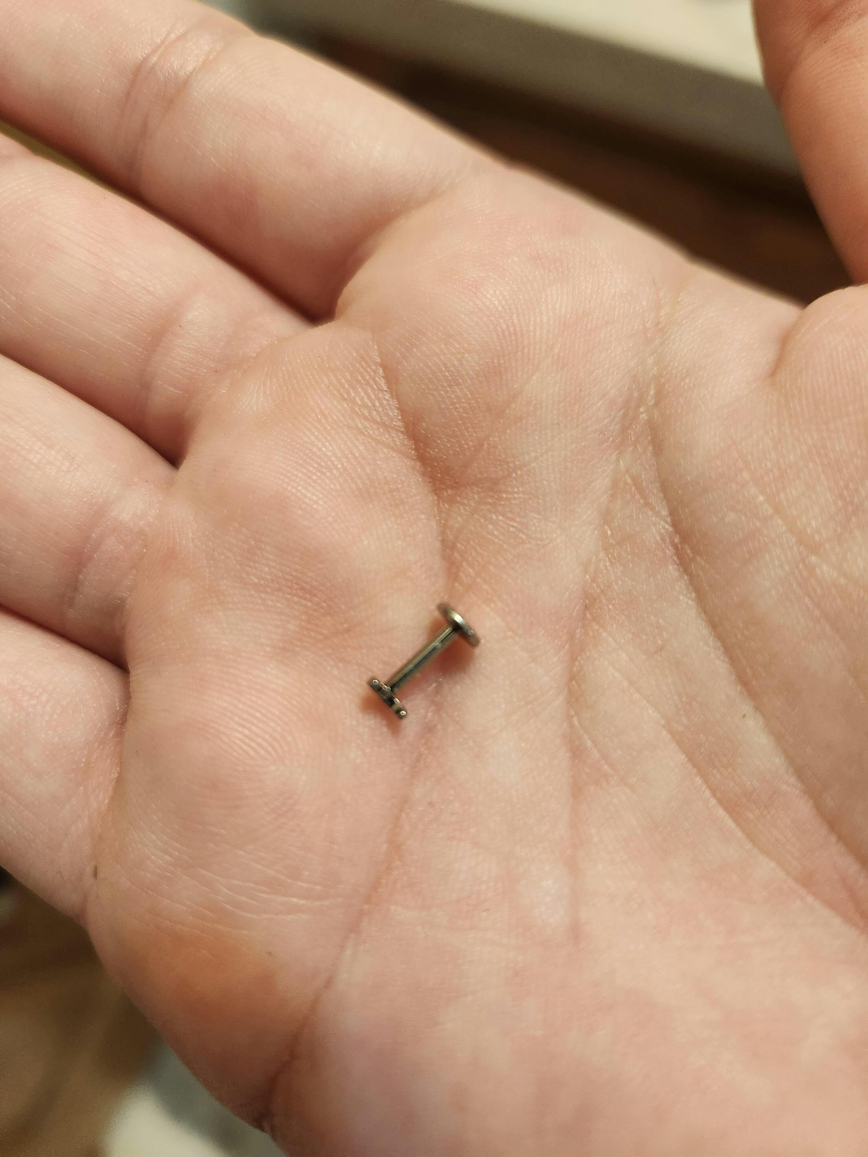 The 16 gauge labret barbell is made from high polish grade 23 titanium (Ti 6Al-4V ELI ASTM F136) with internal threading. The fixed disc end has a 4mm diameter. Choose your size below.