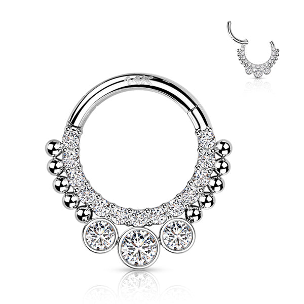 16g Triple CZ Beaded 14k Gold Hinged Ring Hinged Rings