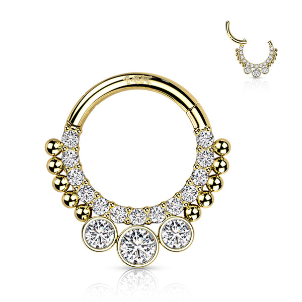 16g Triple CZ Beaded 14k Gold Hinged Ring Hinged Rings 16g - 5/16" diameter (8mm) Clear