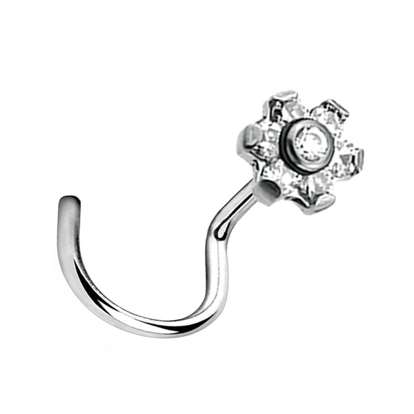 The 20 gauge cz flower nostril screw is made from high polish grade 23 titanium (Ti 6Al-4V ELI ASTM F136). The czs are available in clear only.