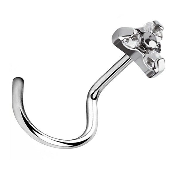 The 20 gauge cz trinity nostril screw is made from high polish grade 23 titanium (Ti 6Al-4V ELI ASTM F136). The czs are available in clear only.