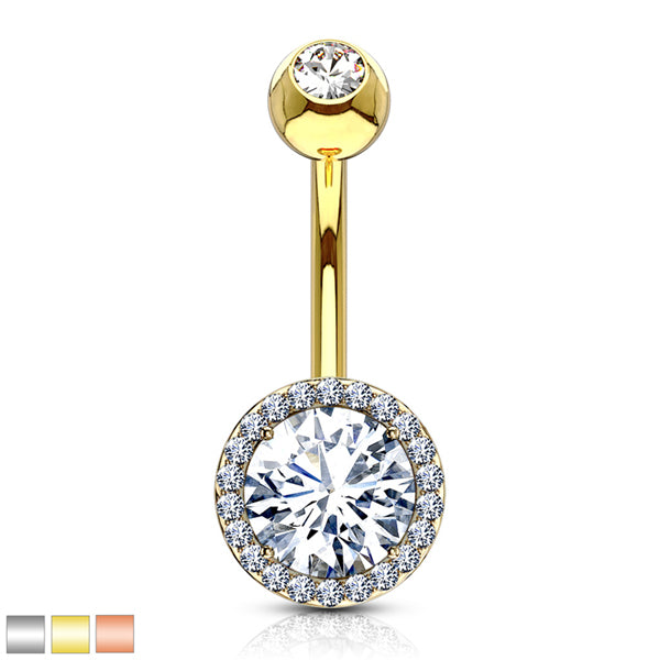 Center CZ Belly Ring Belly No-Dangles 14g - 3/8" long (10mm) Clear CZ