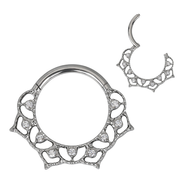 Blossom Titanium Hinged Ring Hinged Rings 16g - 5/16" diameter (8mm) Clear