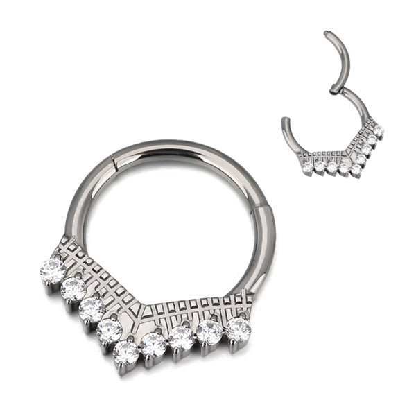 Majestic Chevron Titanium Hinged Ring Hinged Rings 16g - 5/16" diameter (8mm) Clear