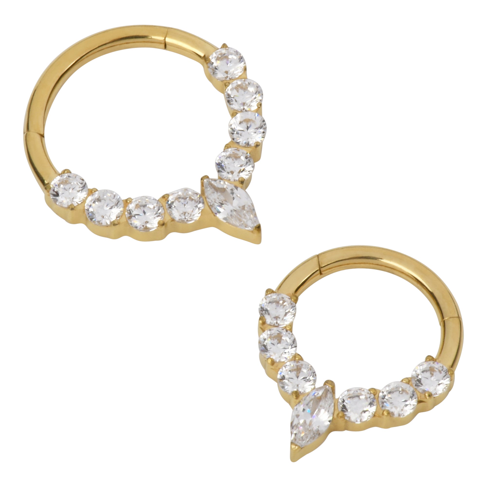 Marquise Center Gold Titanium Hinged Ring Hinged Rings 16g - 5/16" diameter (8mm) Clear
