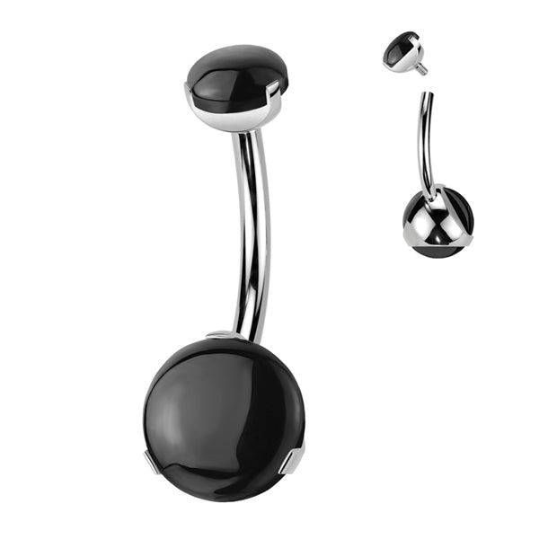Round Stone Titanium Belly Barbell Belly No-Dangles 14g - 3/8" long (10mm) Black Agate