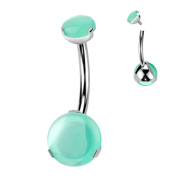 Round Stone Titanium Belly Barbell Belly No-Dangles 14g - 3/8" long (10mm) Green Onyx
