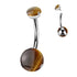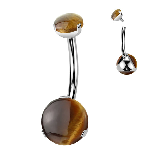 Round Stone Titanium Belly Barbell Belly No-Dangles 14g - 3/8" long (10mm) Tigers Eye