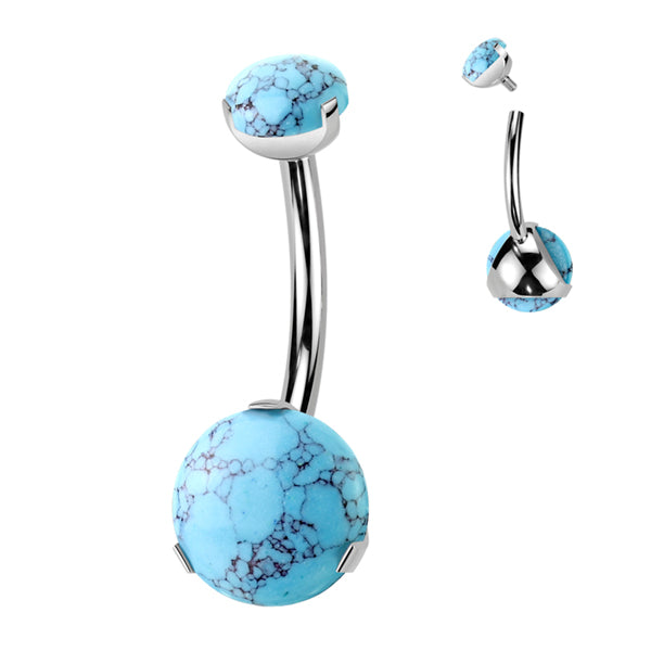 Round Stone Titanium Belly Barbell Belly No-Dangles 14g - 3/8" long (10mm) Turquoise