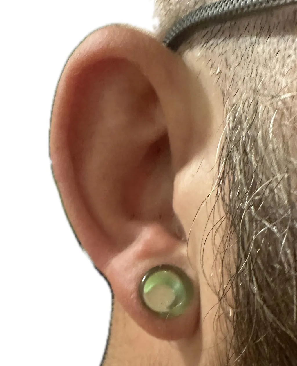 feel nice as a transition from earrings to plugs. the green is quite a bit lighter then it is in the picture which i don't love, but glass is always going to look different in person vs. on screen so i can't be too mad