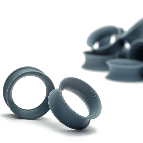 The slate blue skin eyelets are made from implant grade silicone by kaos softwear. The ultra-thin wall eyelets are made from higher stiffness silicone with a less tacky surface. Just strong enough to hold a piercing open, almost like wearing nothing at all. These are sold as a pair. Choose your size below.