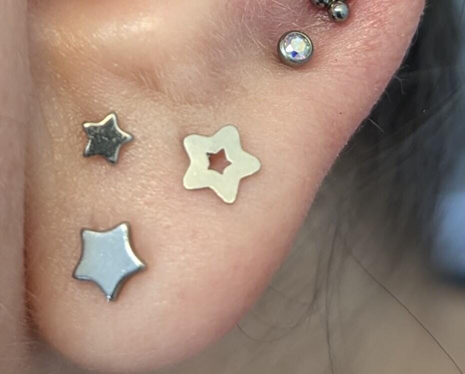 The threadless star outline end is made from 316L stainless steel. It has a 25g pin that is compatible with most threadless jewelry brands.
