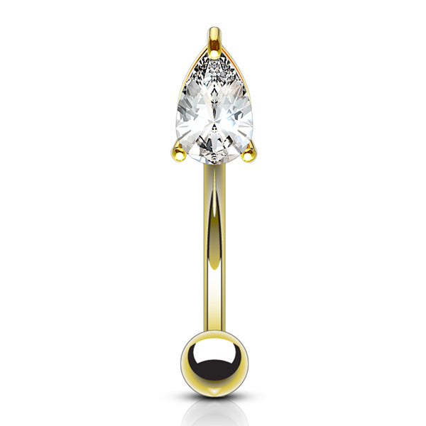 Teardrop CZ Yellow 14k Gold Eyebrow Barbell Eyebrow Jewelry 16g - 5/16" long (8mm) Clear CZ