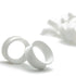 The white skin eyelets are made from implant grade silicone by Kaos Softwear. The ultra-thin wall eyelets are made from higher stiffness silicone with a less tacky surface. Just strong enough to hold a piercing open, almost like wearing nothing at all. These are sold as a pair. Choose your size below.