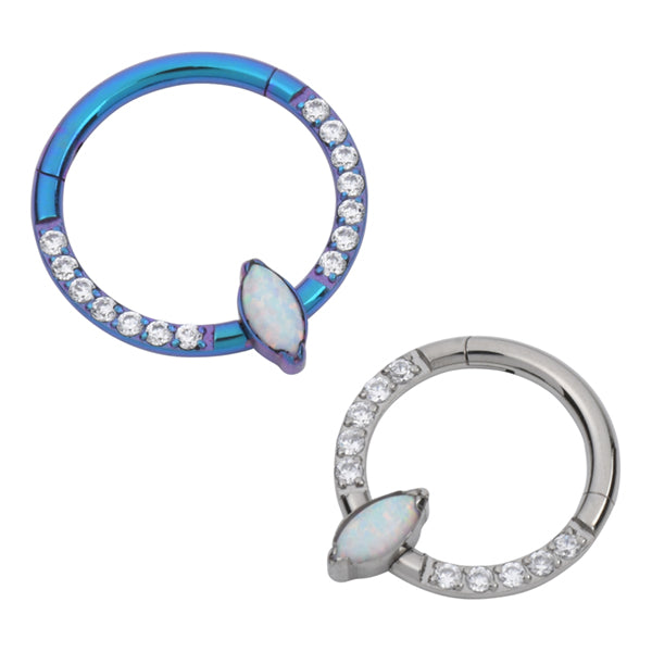 Marquise Opal Face Titanium Hinged Ring Hinged Rings 16g - 5/16" diameter (8mm) Capri Blue Opal / Clear CZ