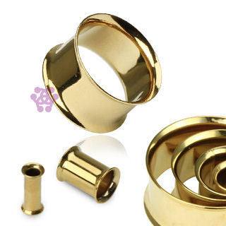 These double flare tunnels are made from gold PVD coated 316L stainless steel. They have a wearable area of 3/8" between flares. Choose your size below.