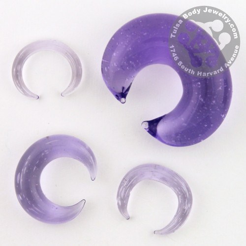 The translucent purple septum pincer is made from hand blown borosilicate glass by glasswear studios. These do not have any center notch. Two clear silicone o-rings are included. Please note that as the glass gets thinner (in smaller sizes), this color will get progressively lighter. Choose your size below.