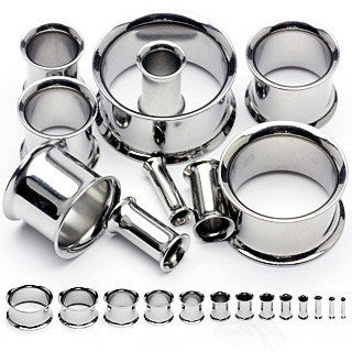 These double flare tunnels are made from 316L stainless steel. They have a wearable area of 3/8" between flares. Choose your size below.