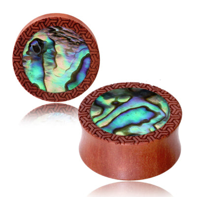 These double flare plugs are made from sabo wood with abalone inlay. Choose your size below.