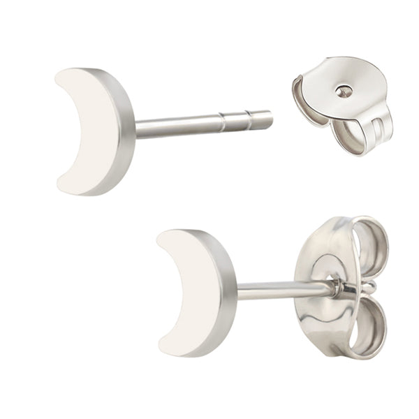 These 20 gauge moon stud earrings are made from high polish grade 23 titanium (Ti 6Al-4V ELI ASTM F136).