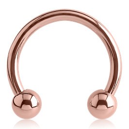 The 16 gauge circular barbell is made from rose gold PVD coated 316L stainless steel with external threading. Both ball ends are removable. Choose your size below.