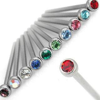 Titanium Unbent CZ Nose Stud Unbent Pins 18g - 3/4" long (19mm) Aqua CZ