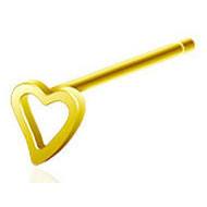 Gold Heart Outline Nostril Pin Unbent Pins 20g - 1/2" long (12mm) Gold Sterling Silver