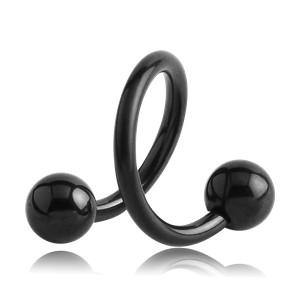 The 14 gauge spiral barbell is made from black PVD coated grade 23 titanium (Ti 6Al-4V ELI ASTM F136) with external threading. Both ball ends are removable. Choose your size below.