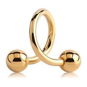 The 14 gauge spiral barbell is made from gold PVD coated 316L stainless steel with external threading. Both ball ends are removable. Choose your size below.
