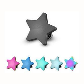 The 14 gauge star end is made from black PVD coated 316L stainless steel. These will fit most any 14 gauge internally threaded straight barbell, labret or dermal anchor. We cannot guarantee compatibility with curved barbells. Choose your color below.
