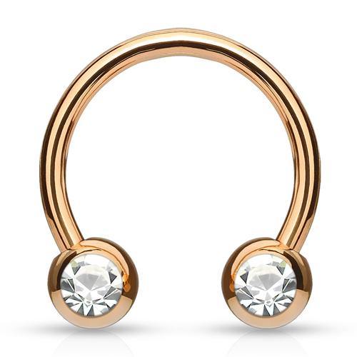14g Side-set CZ Rose Gold Circular Barbell Circular Barbells 14g - 15/32" diameter (12mm) - 5mm balls Clear CZ