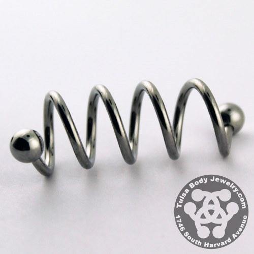 The 14 gauge quadruple spiral barbell is made from 316L stainless steel with external threading. Both ball ends are removable. Choose your size below.