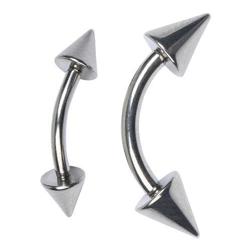 14g Spiked Titanium Curved Barbell (internal) Curved Barbells 14g - 5/16" long (8mm) - 3mm cones High Polish (silver)