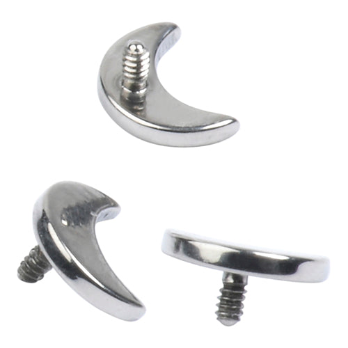 The 14 gauge crescent moon end is made from high polish grade 23 titanium (Ti 6Al-4V ELI ASTM F136). These will fit most any 14 gauge internally threaded straight barbell or labret. We cannot guarantee compatibility with curved barbells.