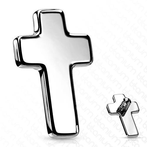 The 14 gauge cross end is made from high polish grade 23 titanium (Ti 6Al-4V ELI ASTM F136). These will fit most any 14 gauge internally threaded straight barbell or labret. We cannot guarantee compatibility with curved barbells.