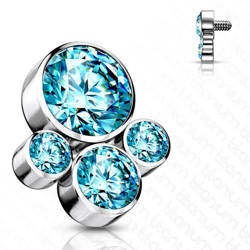 14g CZ Cluster Titanium End Internal Ends 14 gauge - 6.5x7mm Aqua CZ