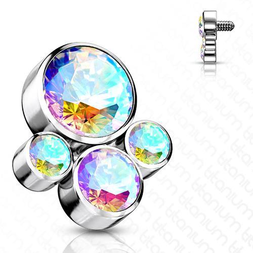 14g CZ Cluster Titanium End Internal Ends 14 gauge - 6.5x7mm Aurora Borealis CZ