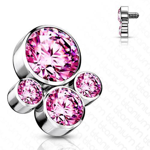 14g CZ Cluster Titanium End Internal Ends 14 gauge - 6.5x7mm Pink CZ