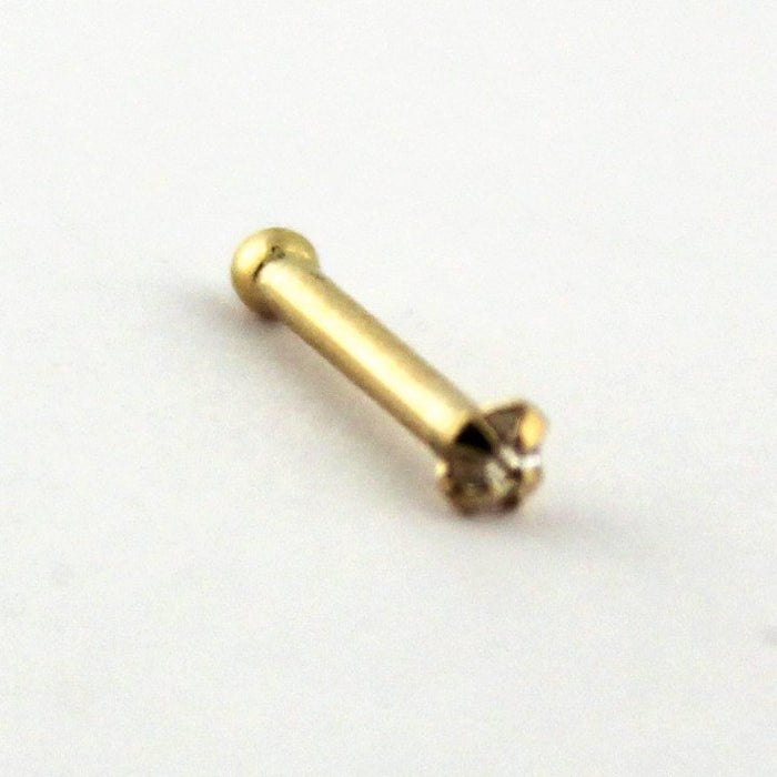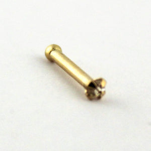 The nose bone is made from solid yellow 14k gold with prong-set CZ. Choose your size below.