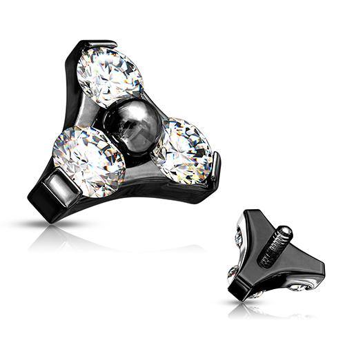 The 16 gauge cz trinity replacement end is made from black PVD coated 316L stainless steel with 2mm prong-set faceted stones. It has an overall size of approximately 5mm. These will fit most any 16 gauge internally threaded straight barbell or labret. We cannot guarantee compatibility with curved barbells. Available with clear gems only.