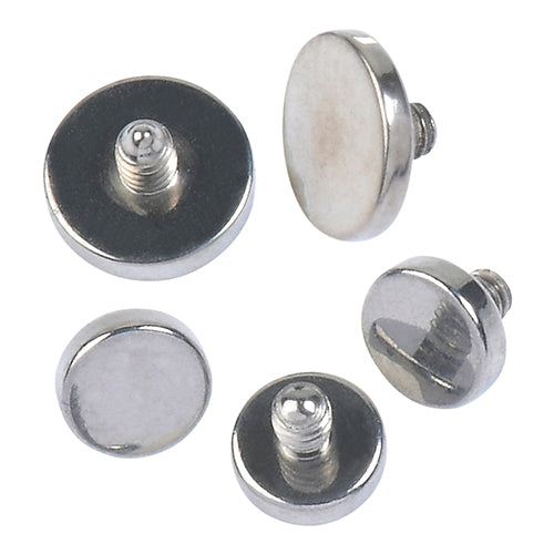 The 16 gauge flat disc replacement end is made from high polish grade 23 titanium (Ti 6Al-4V ELI ASTM F136). These will fit most any 16 gauge internally threaded straight barbell or labret. We cannot guarantee compatibility with curved barbells. Choose your size below.