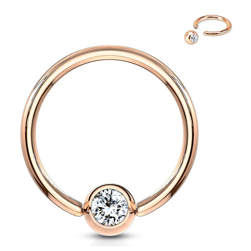 16g Rose Gold Captive CZ Bead Ring Captive Bead Rings