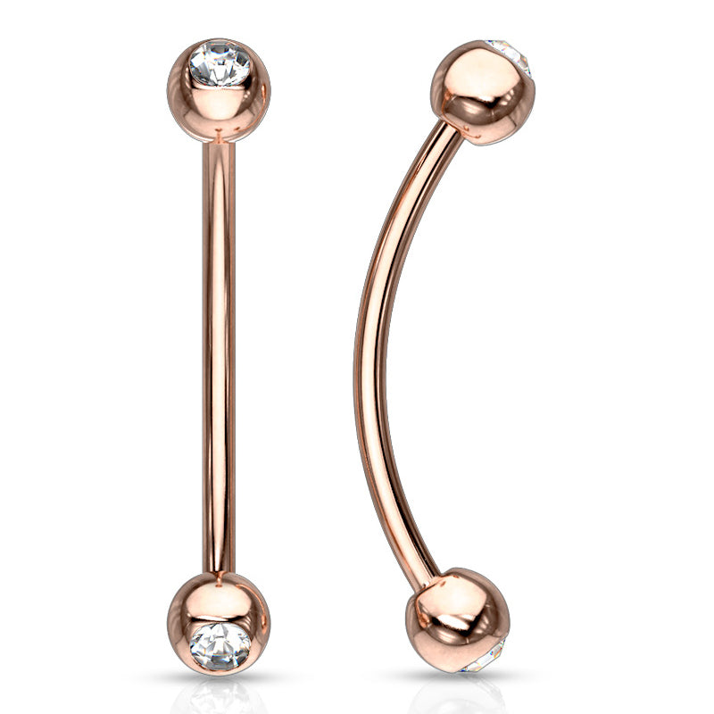 16g Rose Gold CZ Snake Eyes Barbell Curved Barbells
