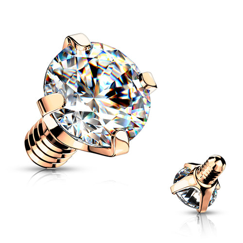 The 16 gauge cz replacement end is made from rose gold PVD coated 316L stainless steel. These will fit most any 16 gauge internally threaded straight barbell or labret. We cannot guarantee compatibility with curved barbells. Choose your gem size below.