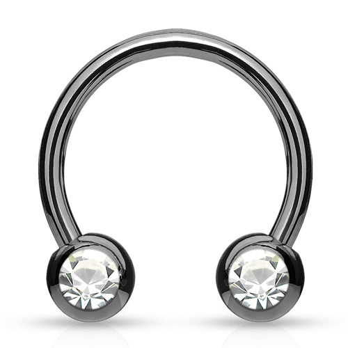 16g Side-set CZ Black Circular Barbell Circular Barbells 16g - 3/8" diameter (10mm) - 4mm balls Clear CZ