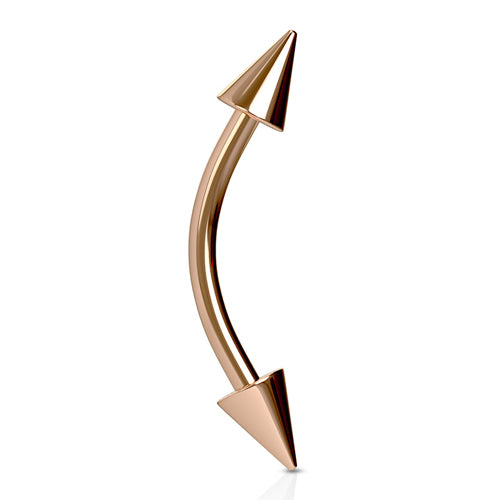16g Spiked Rose Gold Curved Barbell Curved Barbells 16g - 5/16" long - 3x4mm cones Rose Gold Stainless