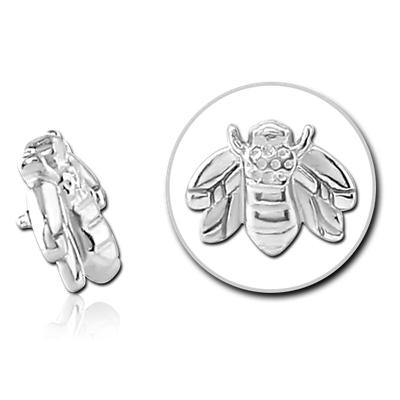 The 16 gauge honeybee is made from 316L stainless steel. They measure about 6.5mm high x 7.2mm wide. These will fit most any 16 gauge internally threaded straight barbell or labret. We cannot guarantee compatibility with curved barbells.