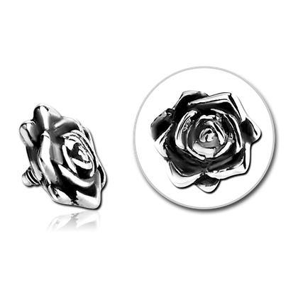 The 16 gauge rose end is made from 316L stainless steel. It has a 6.5mm diameter. These will fit most any 16 gauge internally threaded straight barbell or labret. We cannot guarantee compatibility with curved barbells.