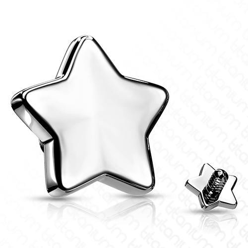 The 16 gauge star end is made from high polish grade 23 titanium (Ti 6Al-4V ELI ASTM F136). These will fit most any 16 gauge internally threaded straight barbell or labret. We cannot guarantee compatibility with curved barbells.